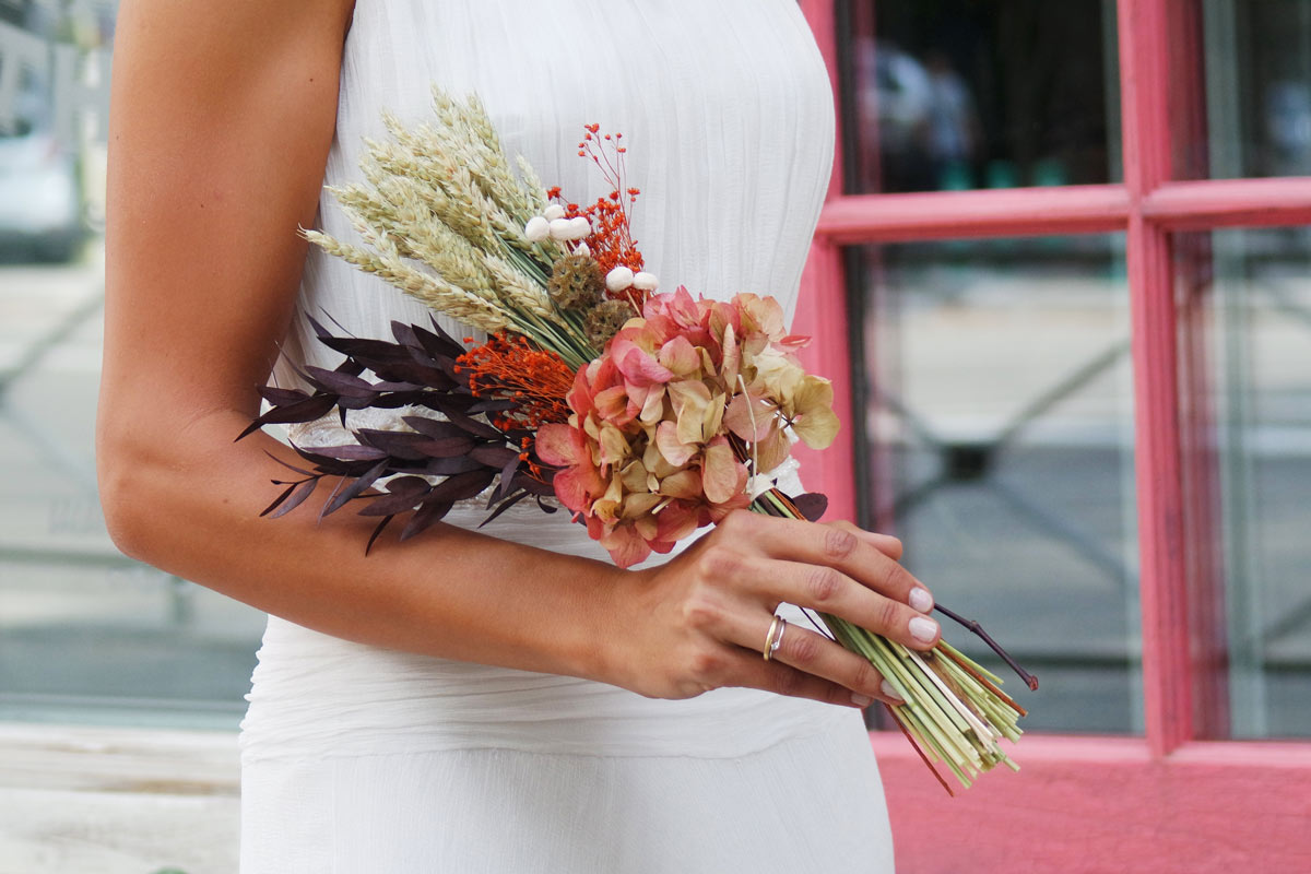 Ramo de novia de hortensia preservada y espiga